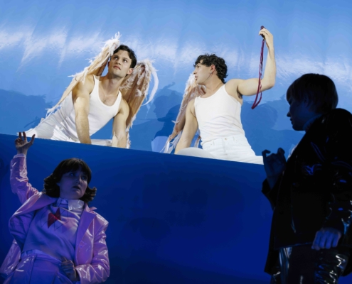 Theater in der Plastikwelt – Zak Zarafshans Queer-Komödie „The Boys Are Kissing“ im Volkstheater
